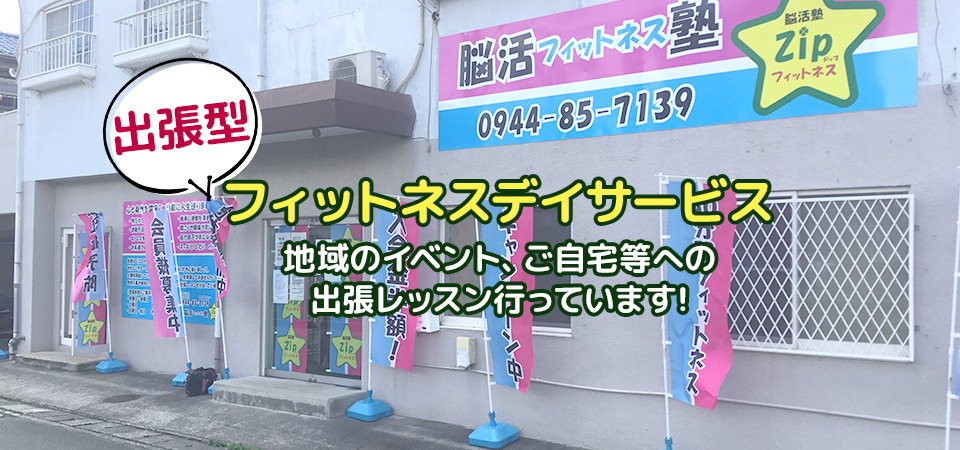 当塾は「出張型フィットネスデイサービス」です。5名様以上お集まりいただければどこへでも出張レッスン致します!!ご自宅や公民館、体育館やご高齢様施設、学校etc…。